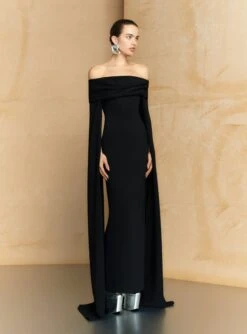 The Adami dress in signature plisse pleat features a wide slash neckline and exaggerated kimono style sleeves.