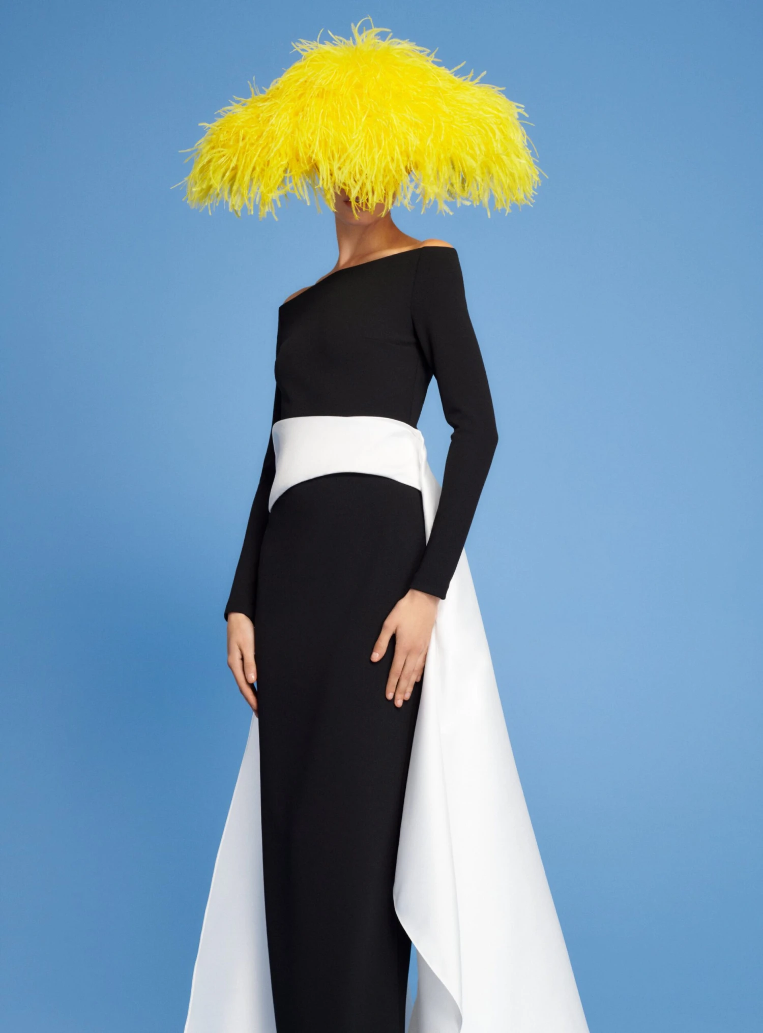 The Livia is a strapless gown with a dramatic contrasting draped sash.