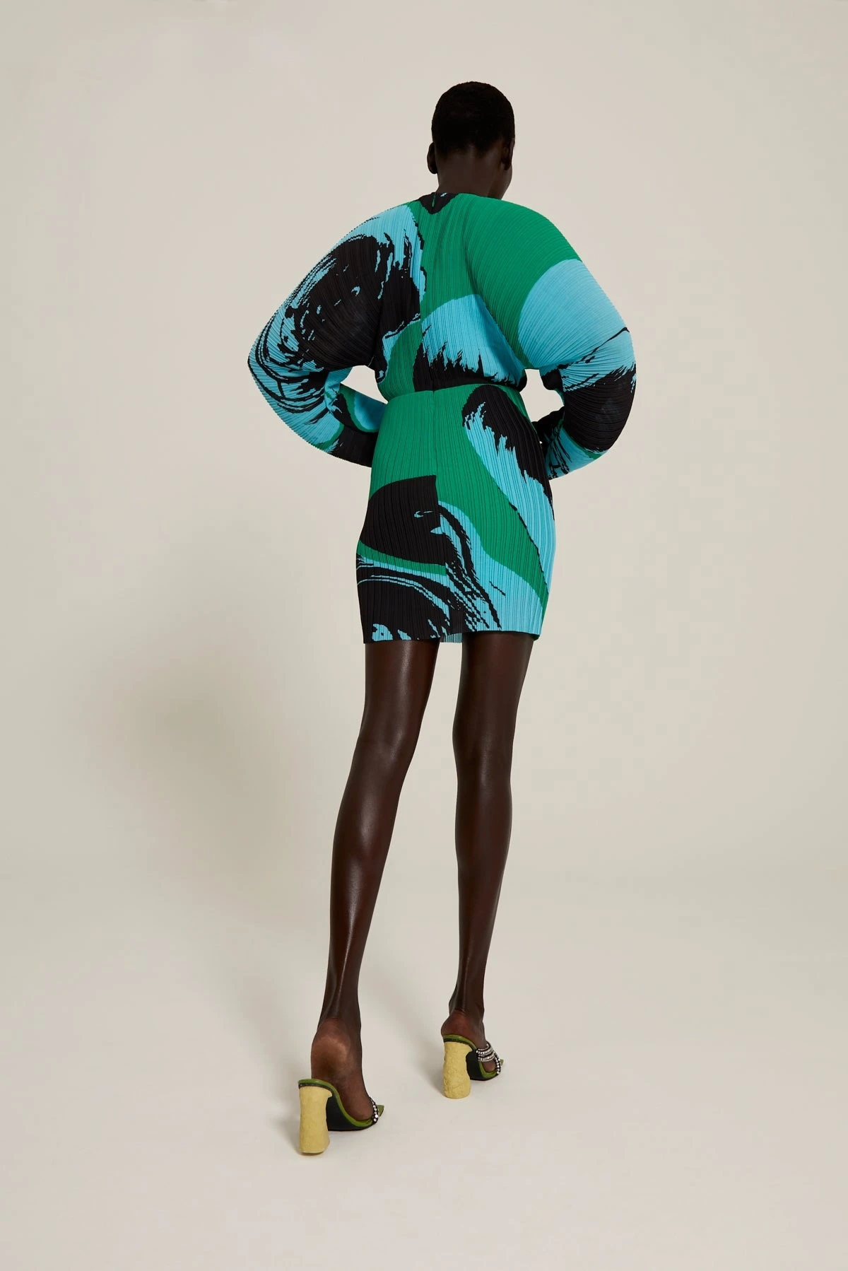 The Mira is a mini length style with exaggerated cocoon sleeves and fitted waist.