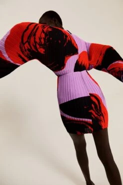 The Mira is a mini length style with exaggerated cocoon sleeves and fitted waist.