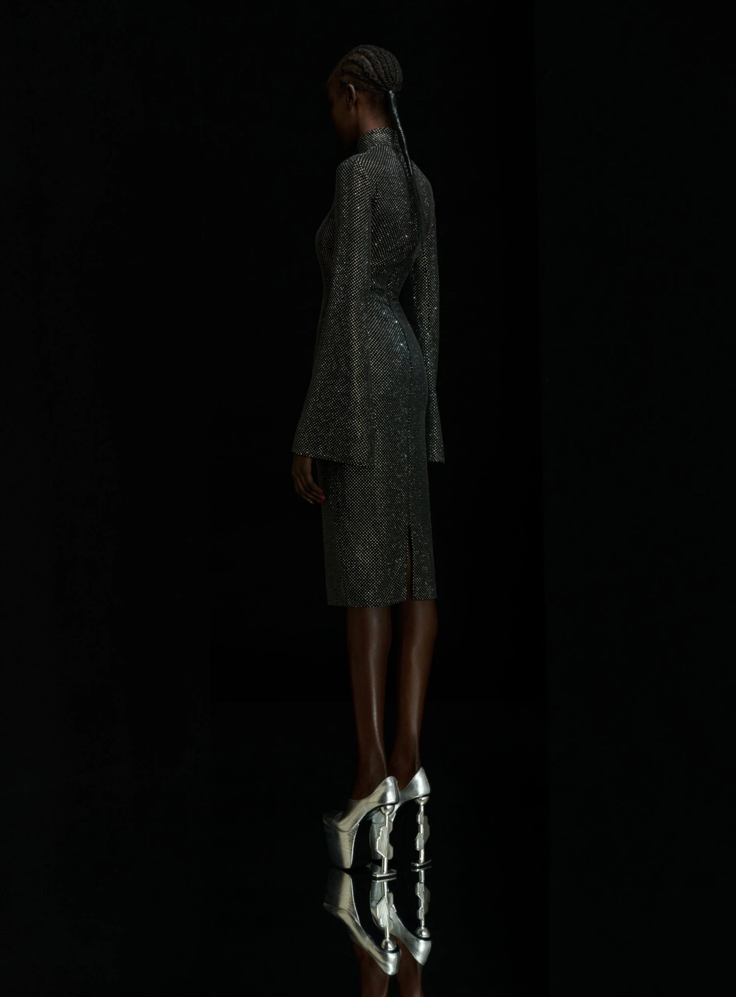 Be the first to review “The Raven Crystal Midi Dress In Black” Cancel reply