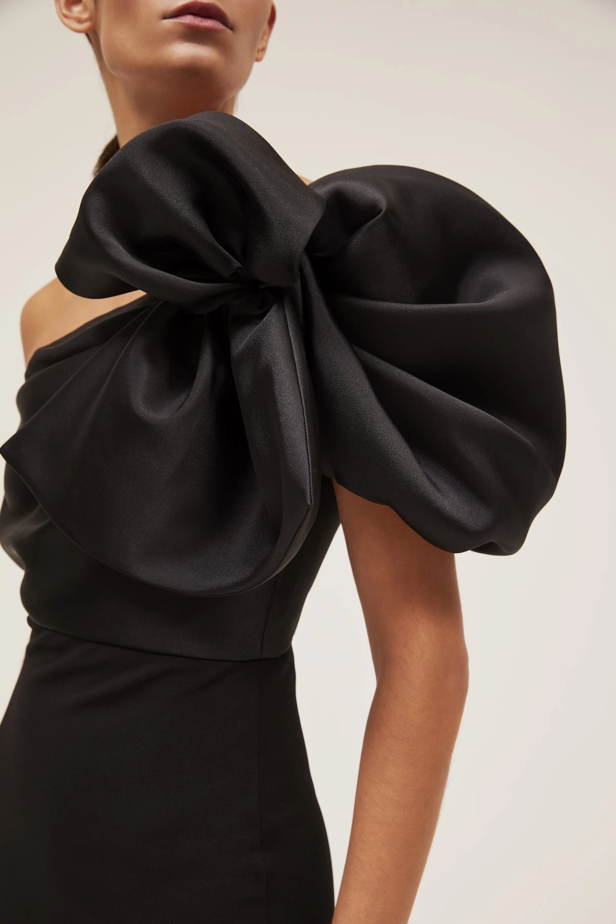 The Tianah is a one shoulder mini style with sculptural asymmetric shoulder detailing.