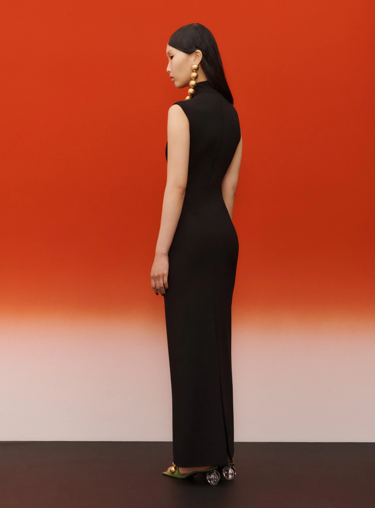 The Yara is a body conscious maxi style with a graphic shoulder cut out and high neck.