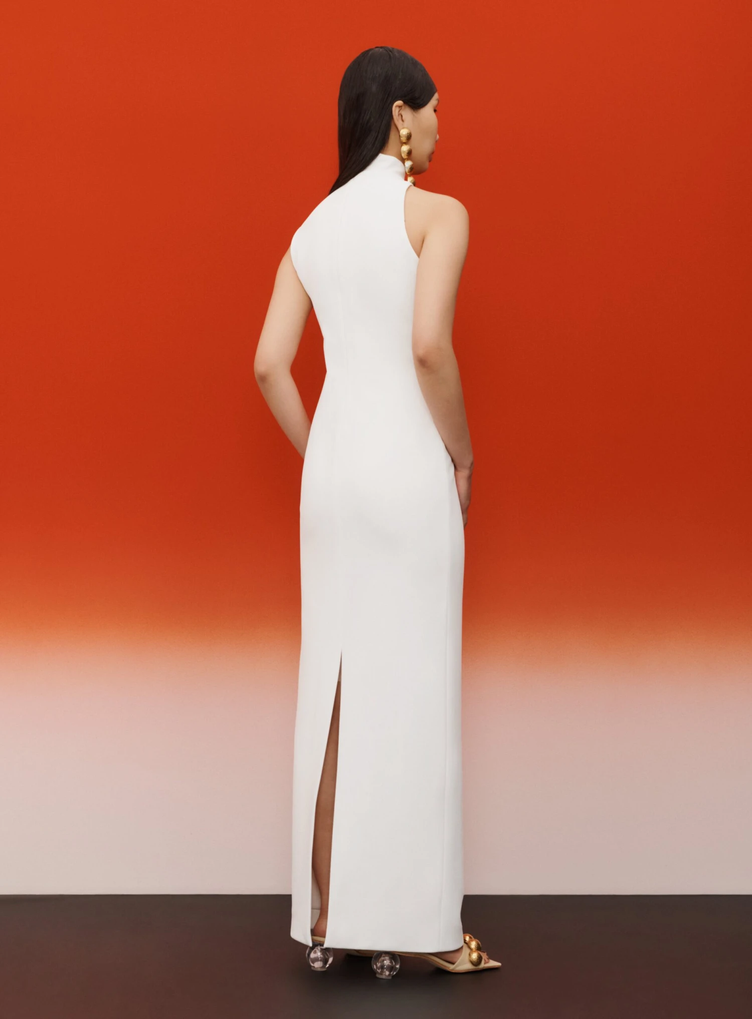 The Yara is a body conscious maxi style with a graphic shoulder cut out and high neck.